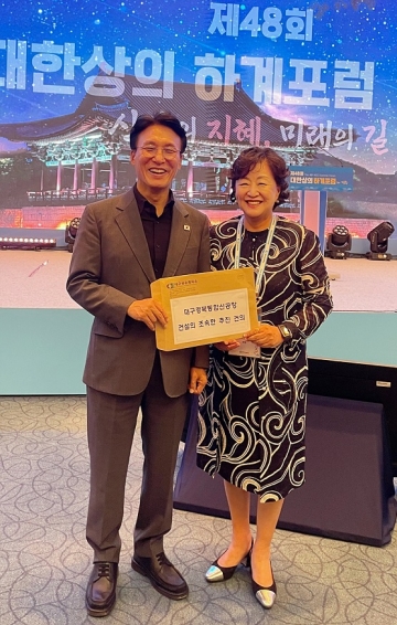 17일, 대구상공회의소(회장 박윤경)는 지난 16일, 라한셀렉트 경주 호텔에서 개최된 대한상의 하계포럼에서 김민석 국무총리에게 대구경북의 숙원사업인 대구경북신공항 조속 건설에 대한 건의서를 직접 전달했다.