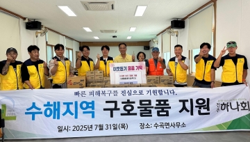 한편, 김도영 수곡면장은 “수해로 힘든 시기를 보내고 있는 주민들에게 따뜻한 위로와 실질적인 도움이 전해져 매우 감사하다”며 “민·관이 함께 협력해 위기 상황에서도 흔들리지 않는 안전한 공동체를 만들어 가겠다”고 말했다.