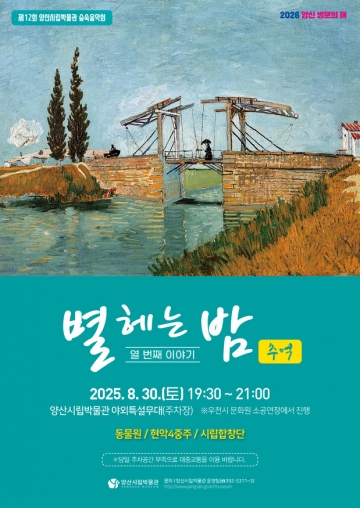 24일, 경남 양산시립박물관(관장 신용철)은 30일 오후 7시 30분부터 박물관 야외주차장 특설무대에서 숲속음악회 '별 헤는 밤, 열 번째 이야기 ‘추억’'을 개최한다고 밝혔다.