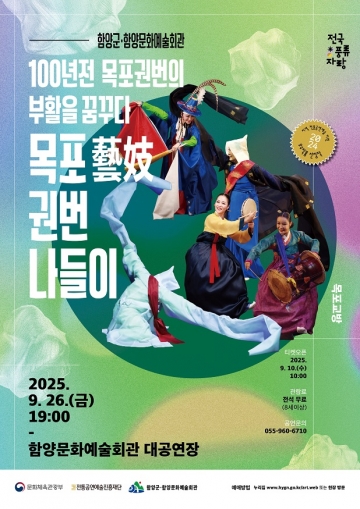 2일, 경남 함양군문화예술회관은 26일 오후 7시, 대공연장에서 ‘100년 전 목포권번의 부활을 꿈꾸다. '목포 예기 권번 나들이’ 공연을 개최한다고 밝혔다.