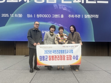 12일, 경남 의령군은 지난 8일 ‘2025년 국민건강영양조사’ 협력 기관 중 조사 품질 및 참여도 제고 분야에서 우수 유공기관으로 선정돼 질병관리청장 기관 표창을 수상했다고 밝혔다.