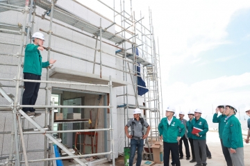 지난해 5월 오태완 군수가 한우산별천지마을 조성사업 현장을 점검하고 있다.