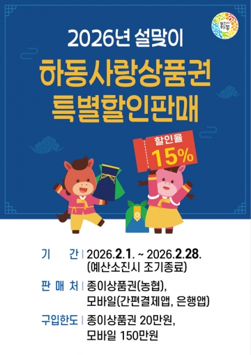 설 명절 앞두고 특별할인판매 실시…하동사랑상품권 2월 한 달간 15% 할인
