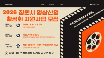 2일, 경남 창원특례시(시장 권한대행 장금용)는 지역의 문화산업 경쟁력을 강화하고 창원에 기반하고 있는 영상물 제작자들의 창작활동을 지원하기 위해 ‘2026년 영상산업 지원사업’ 공모 접수를 오는 2월 9일부터 2월 25일까지 진행한다고 밝혔다.