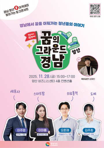 30일, 경남도는 지난 28일 오후 3시 양산비즈니스센터 컨벤션홀에서 청년을 위한 ‘꿈의 그라운드 경남 찾아가는 토크 콘서트’를 개최했다곤 전했다.