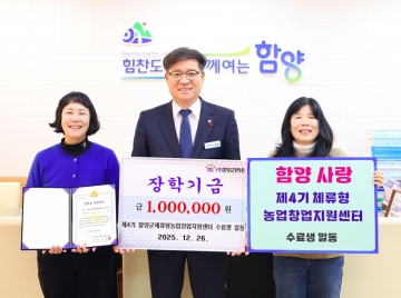 또, 함양군 체류형농업창업지원센터는 귀농·귀촌을 희망하는 도시민에게 영농 교육과 실습 기회를 제공하는 체류형 교육시설로, 제4기 수료생들은 함양군의 정착 지원에 대한 감사의 마음을 담아 장학금 기탁에 동참했다.