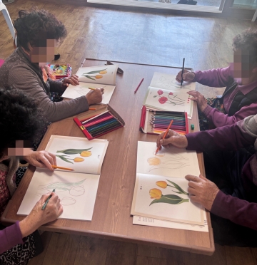 집중력 향상과 소근육 기능 활성화에 효과적인 치매 예방 인지학습지(컬러링북)를 적극 활용하고, 과거의 기억을 떠올리며 뇌를 자극하는 회상 중심의 인지 활동을 통해 어르신들의 기억력 감퇴 예방과 정서적 교감을 돕고 있다.
